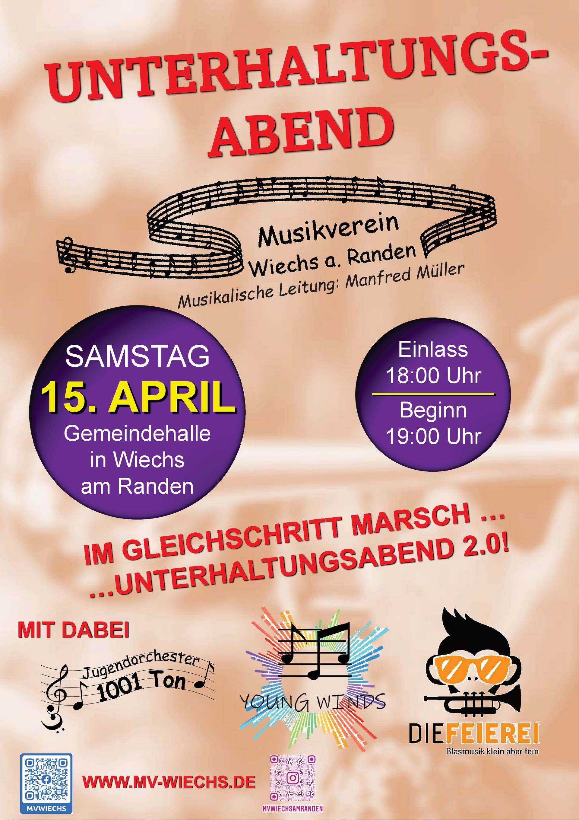 Am 15.04.2023 veranstaltet der Musikverein Wiechs a.R. seinen Unterhaltungsabend unter dem Motto: